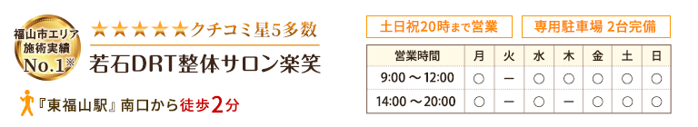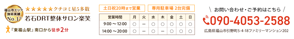 当サロンで扱う技術は、肩こりや腰痛などの痛みが消えることが証明された技術で、当院は福山市エリア唯一の認定院なので症状の改善が可能です。
