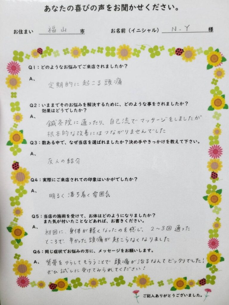 頭痛が改善したお客様の声