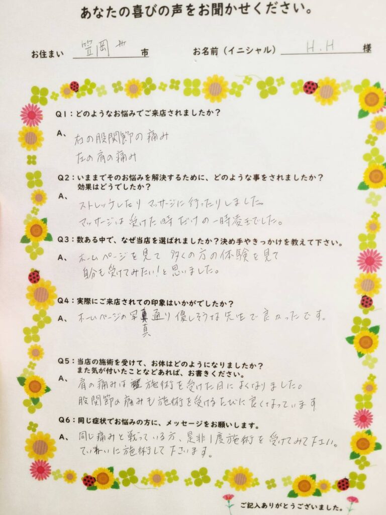 股関節痛が改善したお客様の声