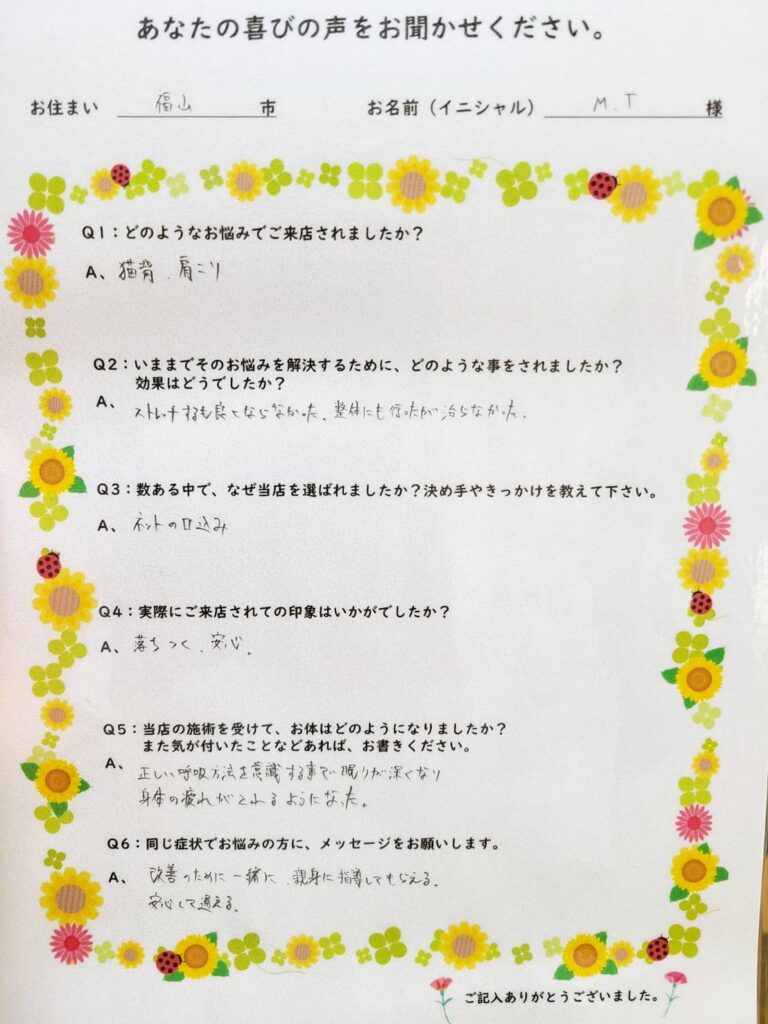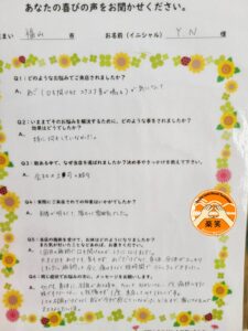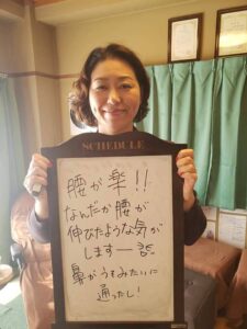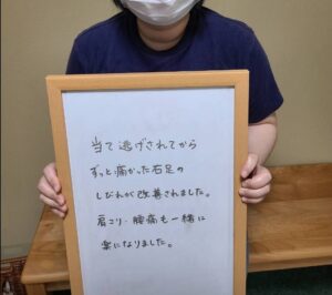 施術後は足のしびれも取れて体が緩んで楽になりました。