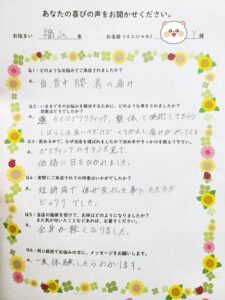 1つの不調だけでなく、自分が今まで感じていなかったところまで楽になるのでおススメしたいです。