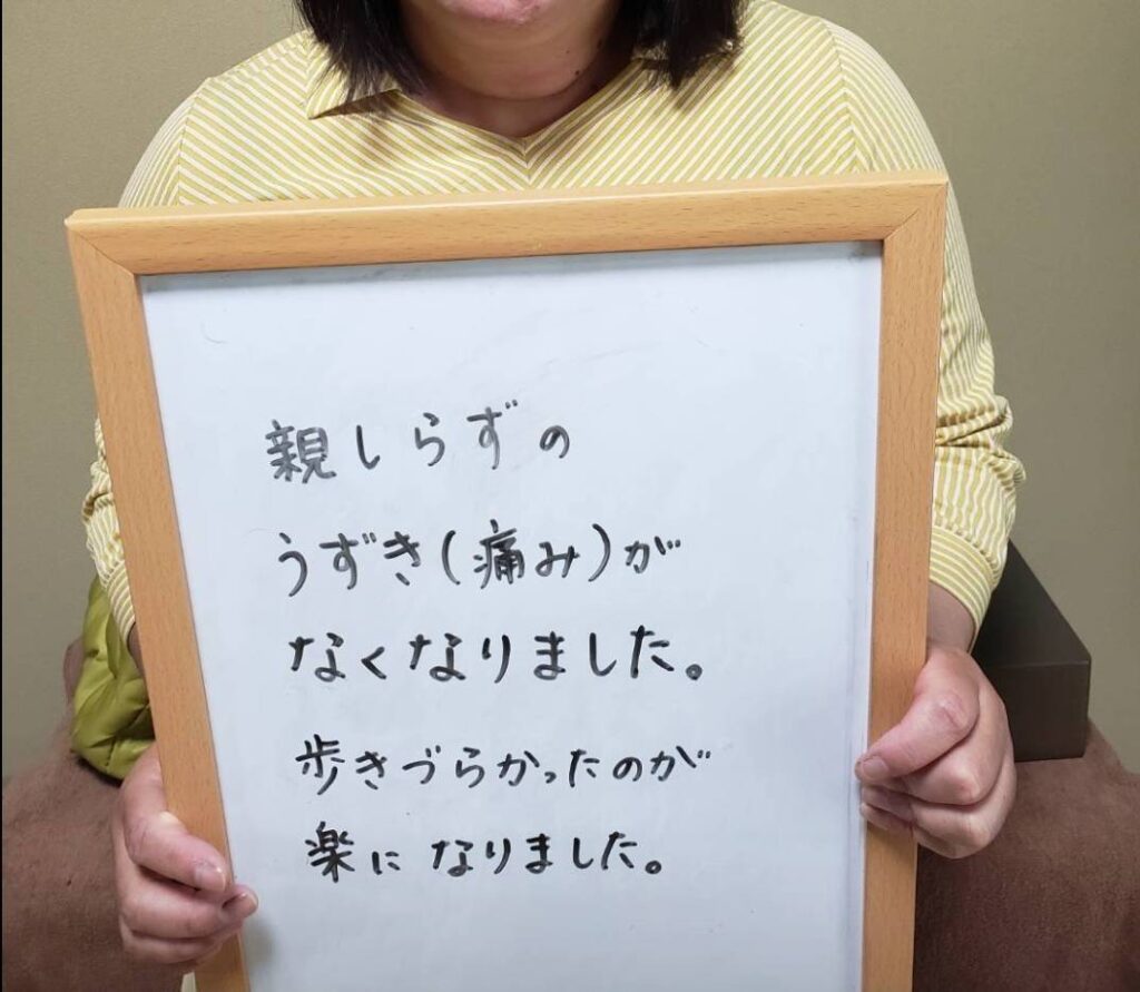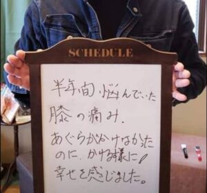 半年間悩んでいた膝の痛み、あぐらがかける様に!幸せを感じました。