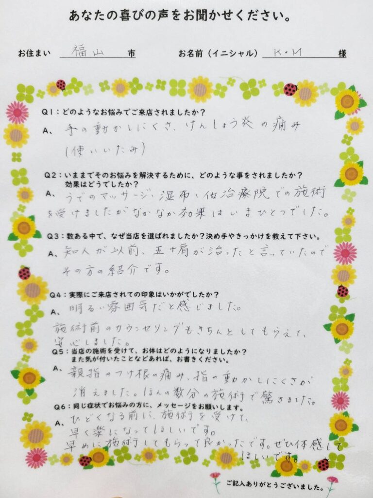 Q. 同じ症状でお悩みの方にメッセージをお願いします。