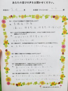 A. 上に書いた痛みがとれて体がスッキリしました!!体がふんわり軽くなりました♪